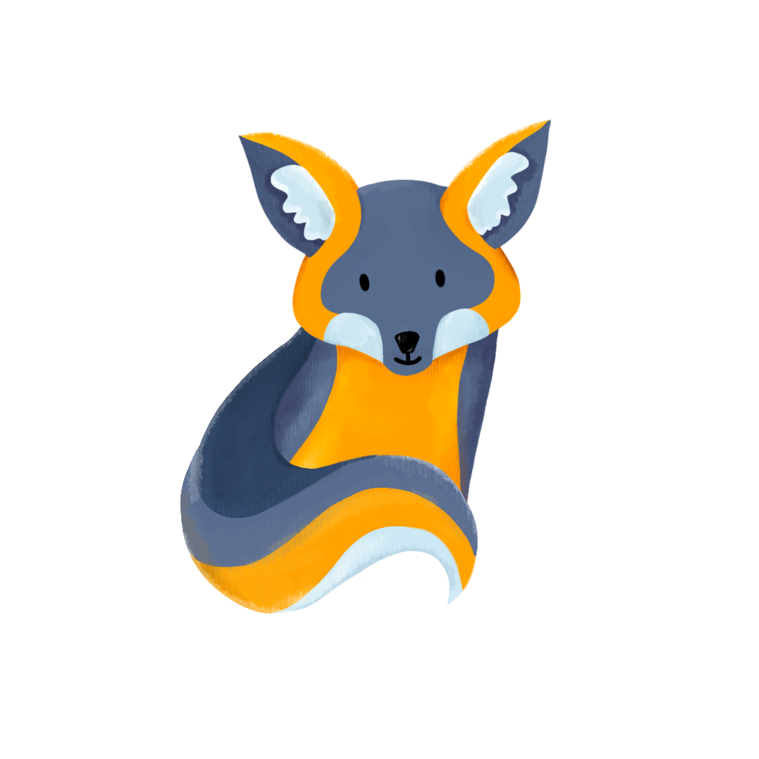 Finn and friends on the SB Creative Lab websiteSB Creative Lab’s mascot, Finn, is a Channel Islands fox, a species that is only found on the Channel Islands off the shore of Santa Barbara. He is the friendly face of the organization, symbolizing intelligence and resourcefulness and reinforcing the blue and orange color scheme. While designing Finn, I went through a number of different iterations to make sure that his design would work from any angle for a variety of graphics.